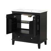 30" Bathroom Vanity With Sink Combo, Multi Functional Bathroom Cabinet With Doors And Drawer - Black