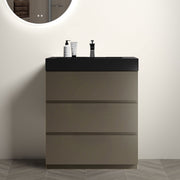 Alice - 30" Bathroom Vanity With Sink, Large Storage Freestanding Bathroom Vanity For Modern Bathroom, One-Piece Black Sink Basin Without Drain And Faucet - Black / Gray