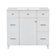 36" Bathroom Vanity With Sink, Soft Close Doors, And Adjustable Shelves Solid Frame - White
