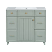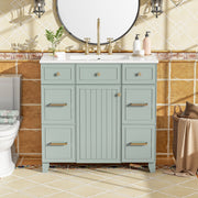 36" Bathroom Vanity With Sink, Soft Close Doors, Adjustable Shelves, And Hairdryer Storage - Green