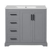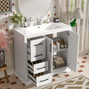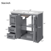 36" Bathroom Vanity With Sink, Soft Close Doors, Adjustable Shelf & 3 Drawers - Gray