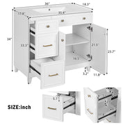 36" Bathroom Vanity With Sink, Soft Close Doors, Adjustable Shelves - White
