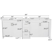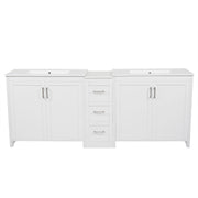 Double Sink Bathroom Vanity With Quartz Countertop, Adjustable Shelves, 3 Drawers - White