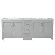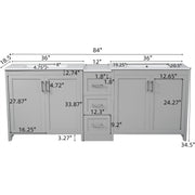 Double Sink Bathroom Vanity With Quartz Countertop, Adjustable Shelves, 3 Drawers - Gray