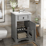 Bathroom Vanity With Ceramic Sink, Soft Close Door, Adjustable Shelf, And Storage Rack - Gray