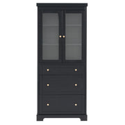 Freestanding Tall Bathroom Cabinet With Adjustable Shelves, Drawers, Soft Close Glass Doors - Black
