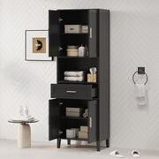 Freestanding Tall Bathroom Cabinet With Soft Close Doors And Adjustable Shelves - Black