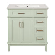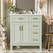 30" Bathroom Vanity With Sink, Soft Close Doors, Deep & Standard Drawer, & - Green