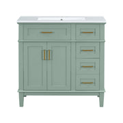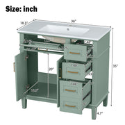 36" Bathroom Vanity With Sink, Soft Close Doors, And Storage Drawers - Green
