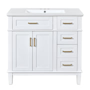 Bathroom Vanity With Sink, Soft Close Doors, And Storage Drawers, 36" - White