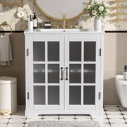 Bathroom Vanity With Sink, Tempered Blurred Glass Doors - White