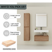 - Easy Installation: Vanity base pre-assembled; requires wall mounting and sink installation.