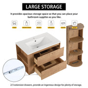 Modern Wall Mounted Bathroom Vanity With Sink And Storage Rack 2 Soft Close Drawers Plywood 30" - Imitative Oak