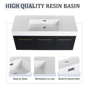 Modern 36" Wall Mounted Bathroom Vanity With Thick Edge Resin Sink And Storage Rack Plywood - Black Chestnut