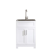 24" White Paint Free Laundry Tub Cabinet With Stainless Steel Combo (Update) - White