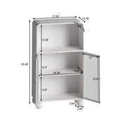 Storage Cabinet With Shelves And Glass Door, Freestanding Organizer For Bathroom - White