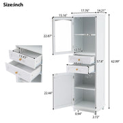 Tall Bathroom Storage Cabinet With Glass Doors, Free-Standing, Two Drawers, And Adjustable Shelves, MDF Board, Painted Perfect For Displaying Your Favorite Items