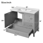 36" Bathroom Vanity With Solid Pine Frame And Soft Close Storage - Gray