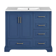 Traditional 36" Bathroom Vanity With Sink, Cabinet With Soft Close Doors And Drawers - Blue
