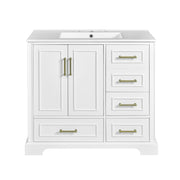 Traditional 36" Bathroom Vanity Cabinet With Sink, With Soft Close Doors And Four Drawers - White