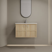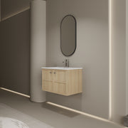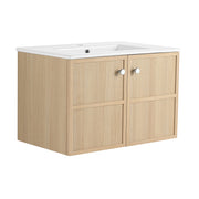 Modern Wall Mounted 30" Bathroom Vanity With Ceramic Sink And Soft Closing Doors - Oak