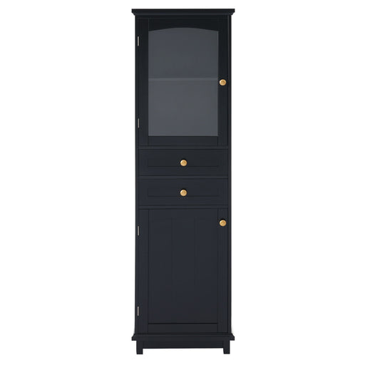 View full detailsTall Bathroom Storage Cabinet With Glass Doors, Free-Standing, Two Drawers, And Adjustable Shelves, MDF Board, Painted Perfect For Displaying Your Favorite Items
