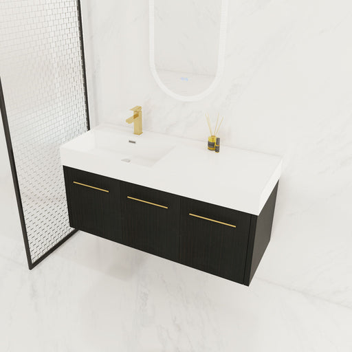 View full detailsContemporary 48" Wall Mounted Bathroom Vanity With Resin Sink And Soft Closing Doors And Line - Black Chestnut