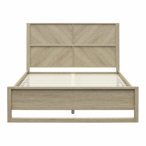 Modern Boho Design: Features genuine acacia veneer with symmetrical chevron grain and cross paneling on the headboard Sturdy Support System: Reinf...
