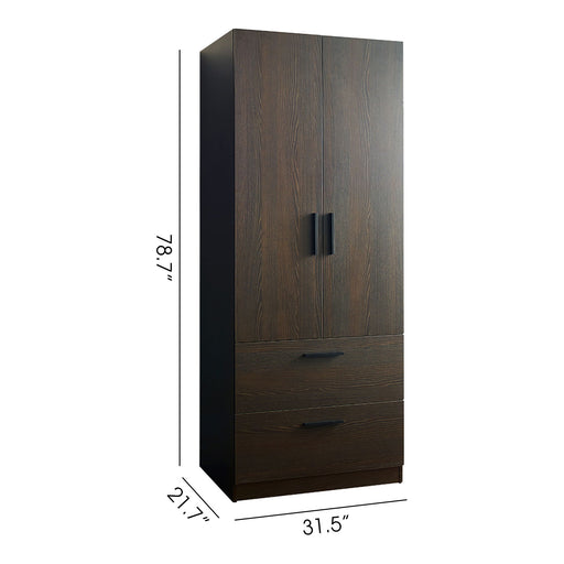 View full detailsBrook - 2 Door Wood Closet With 2 Drawers And Hanging Bars - Dark Brown