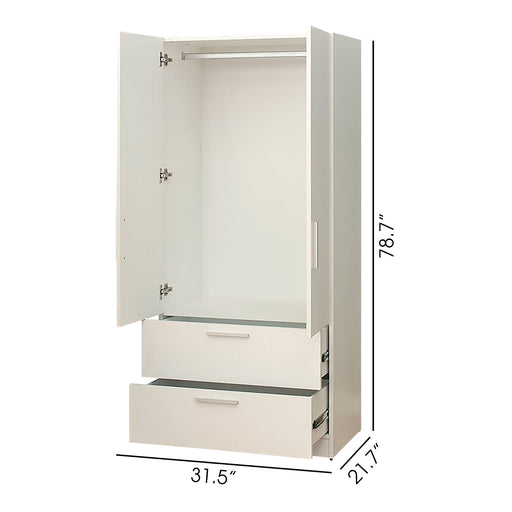 View full detailsEmma - 2 Door Wood Closet With 2 Drawers And Hanging Bars - White
