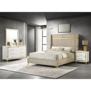 Malcolm - 4 Piece Queen Bedroom Set With Upholstery, Wingback Design - Beige / White
