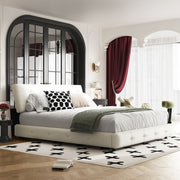 King Size Bed, Tufted Headboard With Extra Large Ultra Soft Cloud Pillow Design, Platform Bed With Double Support - Beige / White