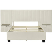 Queen Size Upholstered Platform Bed With Big Headboard - Beige