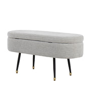 - Stylish Design: The Harvey Storage Bench by LumiSource combines modern and mid-century elements with its fabric upholstery, black metal tapered legs, and gold foot accents, adding a chic touch to any room.