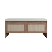 Storage Bench With Cushion, Shoe Cabinet With 2 Doors - Antique Natural / Rattan