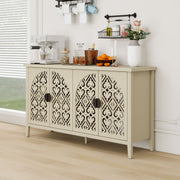 Hollowed Out Cabinet With 4 Doors, Suitable For Bedroom - Natural