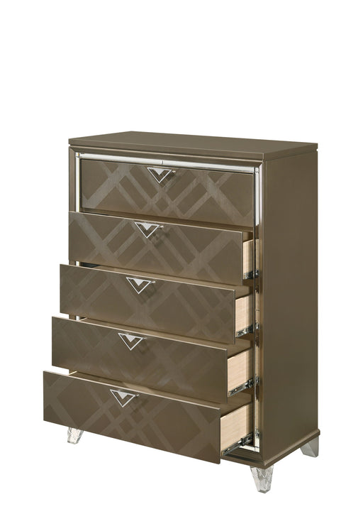 Sleek Design: This chest features a modern design with five spacious drawers, each accented with glamorous acrylic trim for a touch of luxury...
