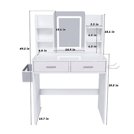 Modern Mini Dressing Table With Led-Lit Mirror & Hidden Storage, Adjustable Brightness Vanity Desk - White