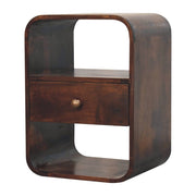 - Curve Drawer Nightsand - This solid wood nightsand has been constructed from 100% solid mango wood in an finish and offers a nice rounded look on the edges. It features 2 drawers which come with a shiny knob and open slots for extra storage. A great simple and addition to the bedroom.