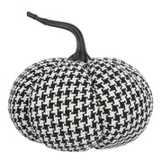 - Farmhouse Style: Crafted from white and black fabric with a knit plaid motif, this pumpkin embodies a farmhouse style that enhances the autumn atmosphere in living rooms and dining rooms.