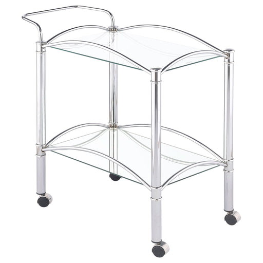 View full detailsPorch & Den - 2 Tier Rectangular Glass Shelf Bar Cart With Glass - Chrome