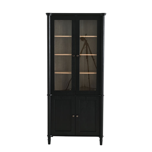 Vintage Display Cabinet With Double Glass Doors, Traditional Style For Collectibles, Ash Wood Veneer, 73.25" Tall - Black / Natural