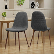 Mid Century Dining Chair (Set of 2) With Fabric Upholstery, Dark Walnut Metal Legs - Light Gray