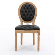 French Style Solid Wood Frame Antique Painting, Hand-Pulled Buckle Decoration Artificial Leather Dining Chair With Nailhead Trim, Wood Legs - Black