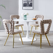 Modern Chair With Iron Tube Legs, Soft Cushions And Comfortable Backrest, Suitable For Dining Room, Living Room, Cafe, Hairball Back (Set of 4) - White / Gold