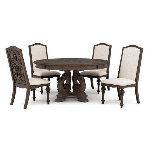View full detailsCrispin - 5 Piece Round Dining Table Set With Upholstered Chairs - Brown