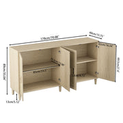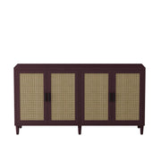 Rattan Buffet Cabinet With Storage, 4 Door Sideboard, Adjustable Shelves - Natural