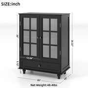 Buffet Cabinet With Double Glass Doors And Drawer, Storage Sideboard - Black