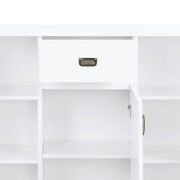 • Versatile Storage: Includes one storage drawer and three doors with five adjustable shelves inside, perfect for organizing dinnerware, linens, and other items of various sizes.