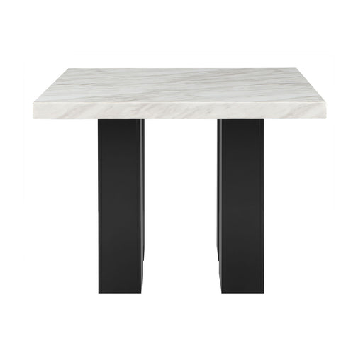 Elegant Design: This bar table features a sophisticated faux marble top paired with a contrasting double pedestal base, adding a chic and modern ...